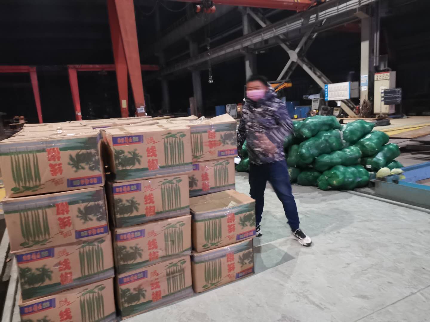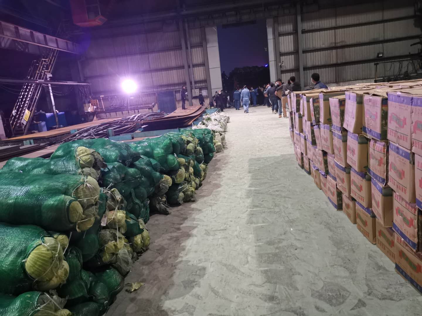 蔬菜雖然到了,但由于鄂州實行疫情管制,大部分人都在居家隔離,黨員干部很大部分分派到各個關鍵崗位工作,而且又是晚上,短時間很難集中人員進行卸貨作業(yè)!